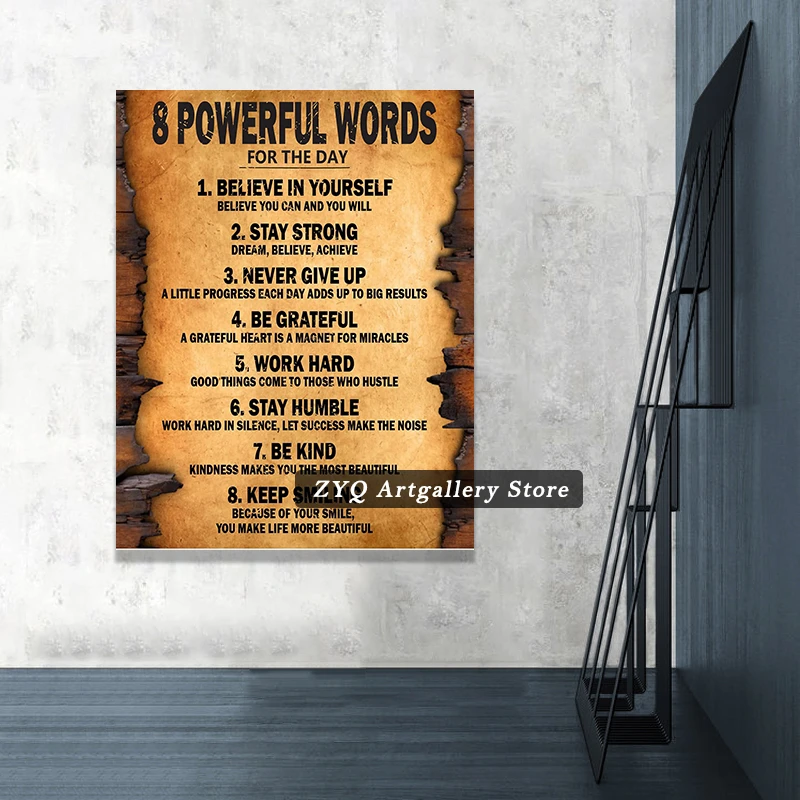 8 Powerful Words For The Day Motivational Poster Inspirational Wall Art Print Positive Uplifting Quotes Affirmation Pictures For Painting Calligraphy Aliexpress