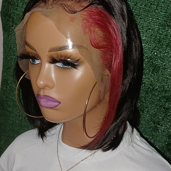 Skunk Stripe Hair 99j Root 13x4x1 Lace Front Wig Human Hair Colored Wig With Red Ebay