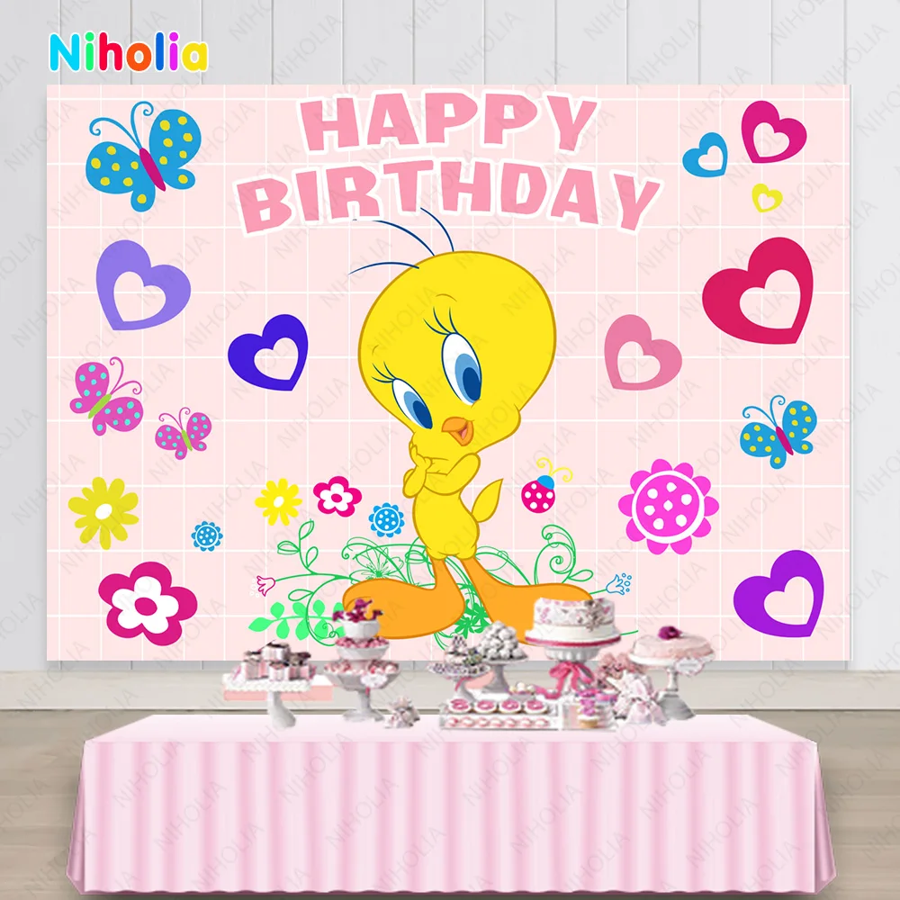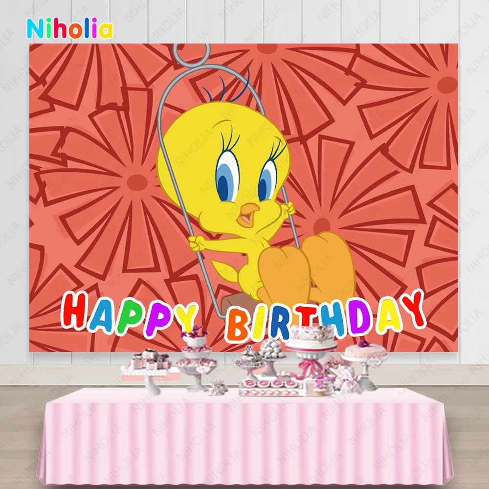 Niholia Yellow Tweety Bird Happy Birthday Photography Backdrop For Kids Party Background Vinyl Photo Studio Props Aliexpress
